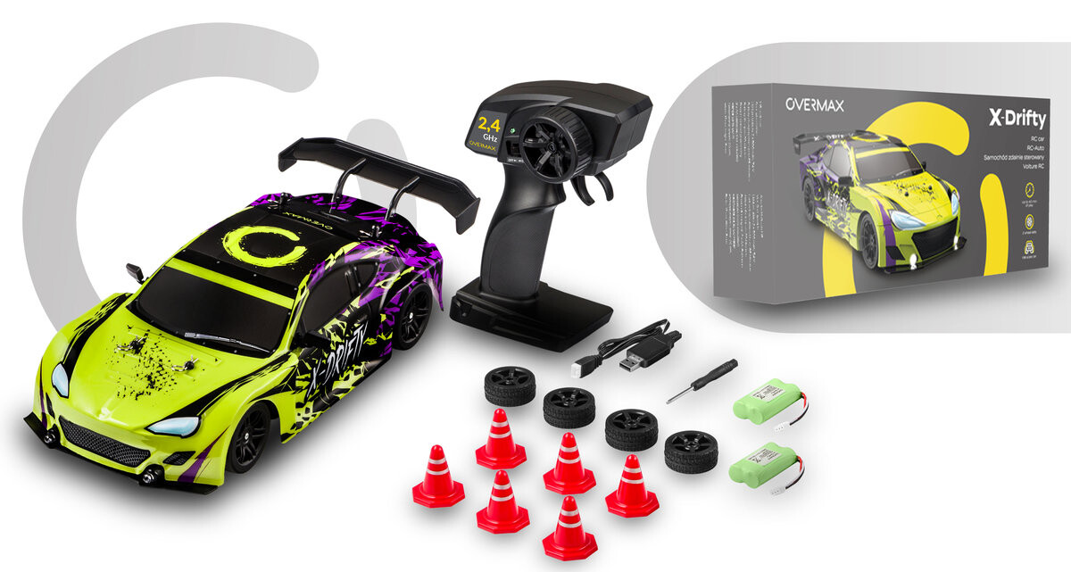 Рукоуправляемая машина Беспроводной контроллер Набор инструментов Кабель для зарядки 2 аккумулятора Препятствия 2 комплекта колес: для дрифта (1) и гонок (1) Набор наклеек Фотографии предназначены только для иллюстрации. Используйте устройство только на плоских и твердых поверхностях. Избегайте езды по песку, траве и другим поверхностям, которые могут повредить ваше устройство. Рукоуправляемая машина OvermaxOvermax — польский бренд с европейскими корнями. В ее портфолио есть высококачественная бытовая электроника: оба устройства облегчают повседневную работу
