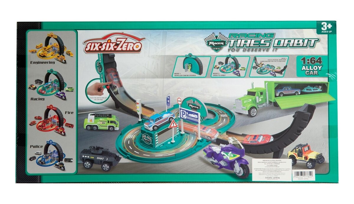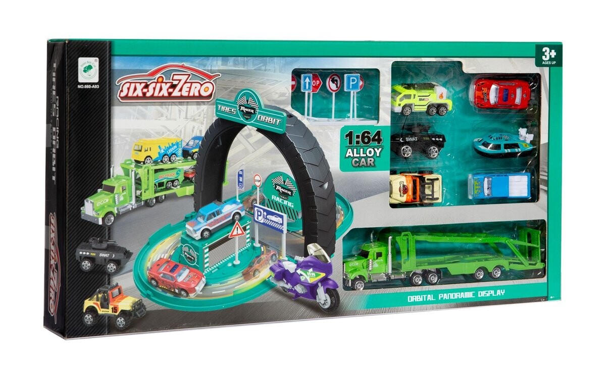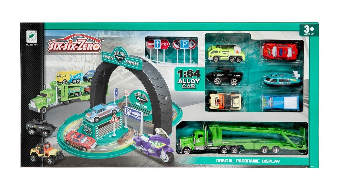 Гоночная трасса с набором транспортных средств, горкой и дополнительными аксессуарами. Трасса имеет 3 игровых модуля: сложная трасса с местом для хранения техники; открытая трасса со сложной аркой – шиной; расширенная колея и арка, создающая место, по которому могут ездить автомобили. На салазках имеется рычаг, позволяющий опустить автомобиль. Трасса оснащена пакетом дорожных знаков и наклеек для самостоятельного размещения. В комплект входит эвакуатор, на котором мы можем перевезти входящие в комплект автомобили меньшего размера (их целых 6 штук!). Прицеп регулируемый, поэтому вы можете менять его компоновку и количество доступных транспортных мест. Благодаря всем вышеперечисленным возможностям набор подарит получателю много часов прекрасного и творческого веселья! Товар упакован в картонную коробку. что идеально подойдет в качестве подарка.