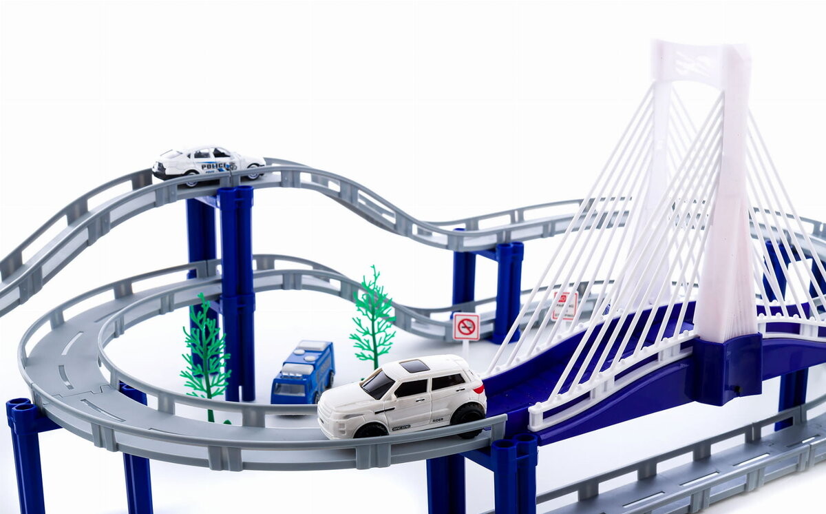 Дорожка изготовлена из качественного пластика , который очень прочный и достаточно гибкий, поэтому риск поломки элементов при соединении практически невозможен, а сама сборка происходит быстро. и детская игра.
