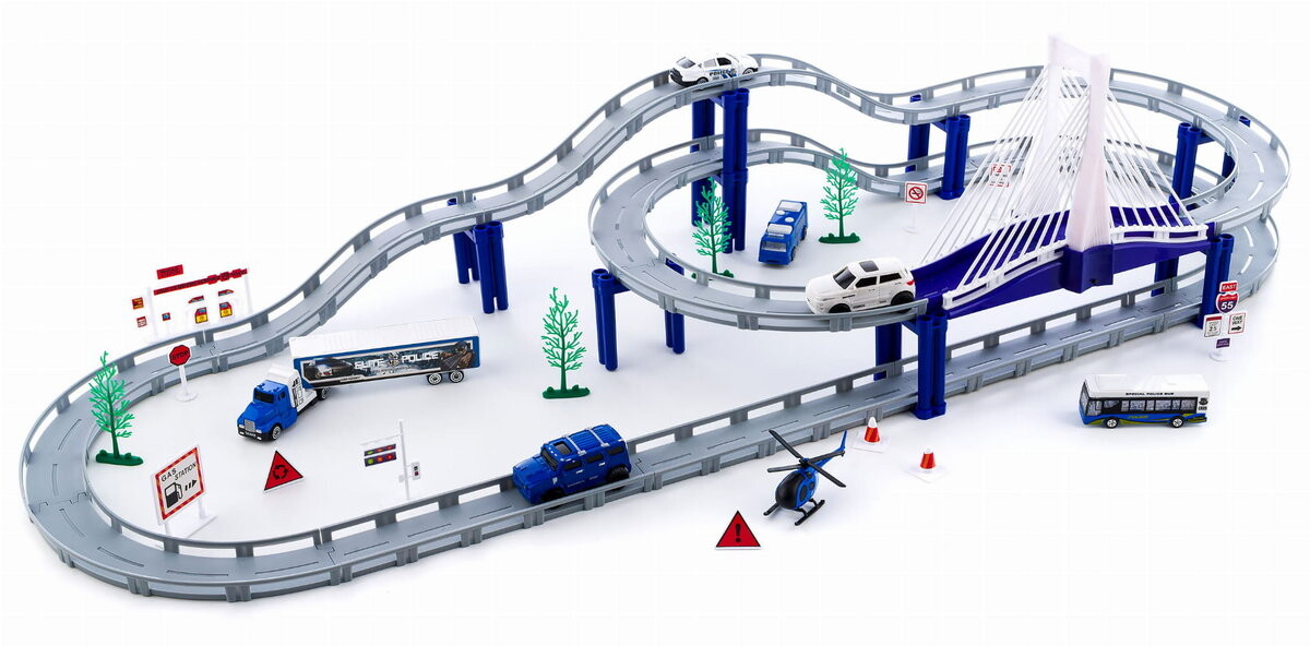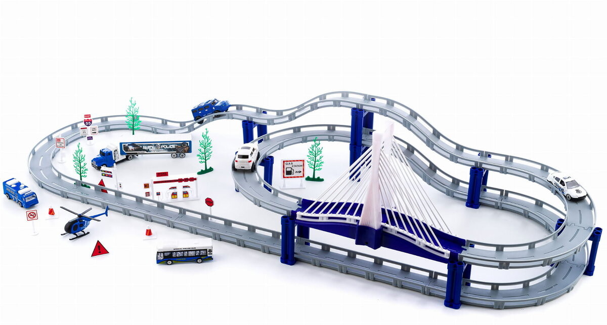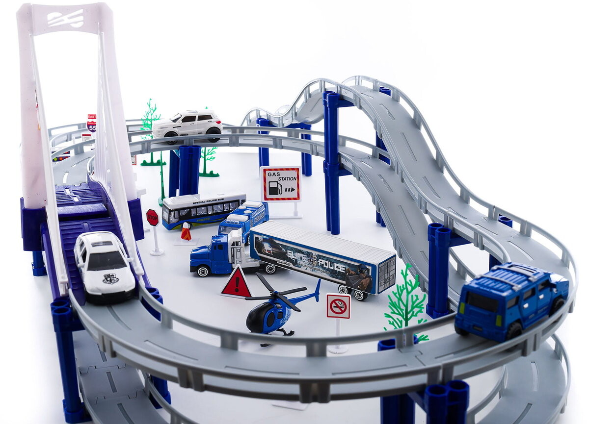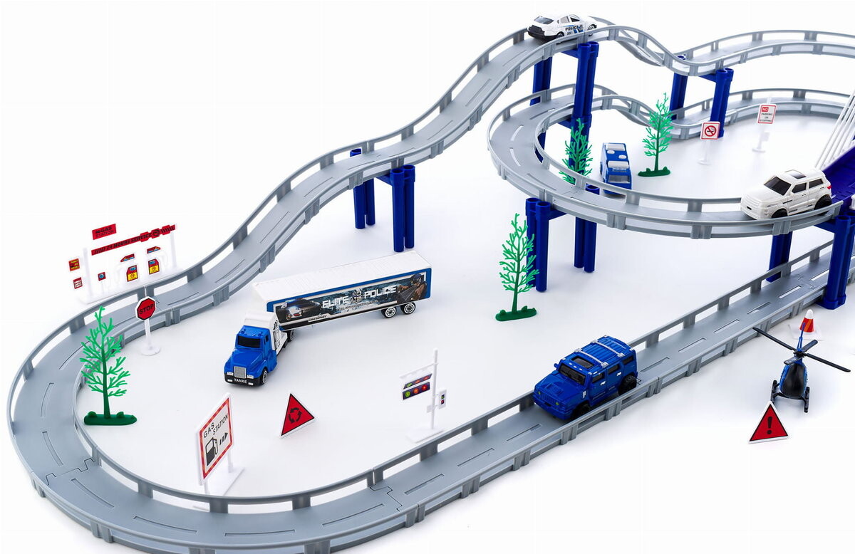 Трасса длиной почти четыре метра с автомобилями , легковыми автомобилями, грузовиками, автобусами, вертолетами и множеством аксессуаров подарит часы веселья, пригласите друзей присоединиться к веселью Пусть каждый выберет понравившееся транспортное средство и проверит, нужна ли кому-нибудь ваша помощь.Простая сборка и высокое качество изготовления.