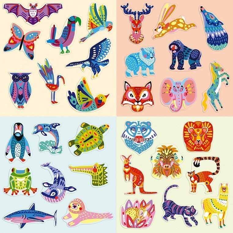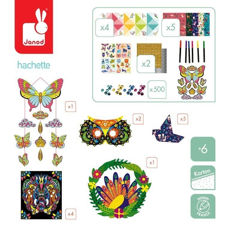 Мультинабор креативных украшений «Животные» французского бренда JANOD содержит разнообразные, красочные элементы, из которых можно создать целых 17 прекрасных украшений для детской комнаты!