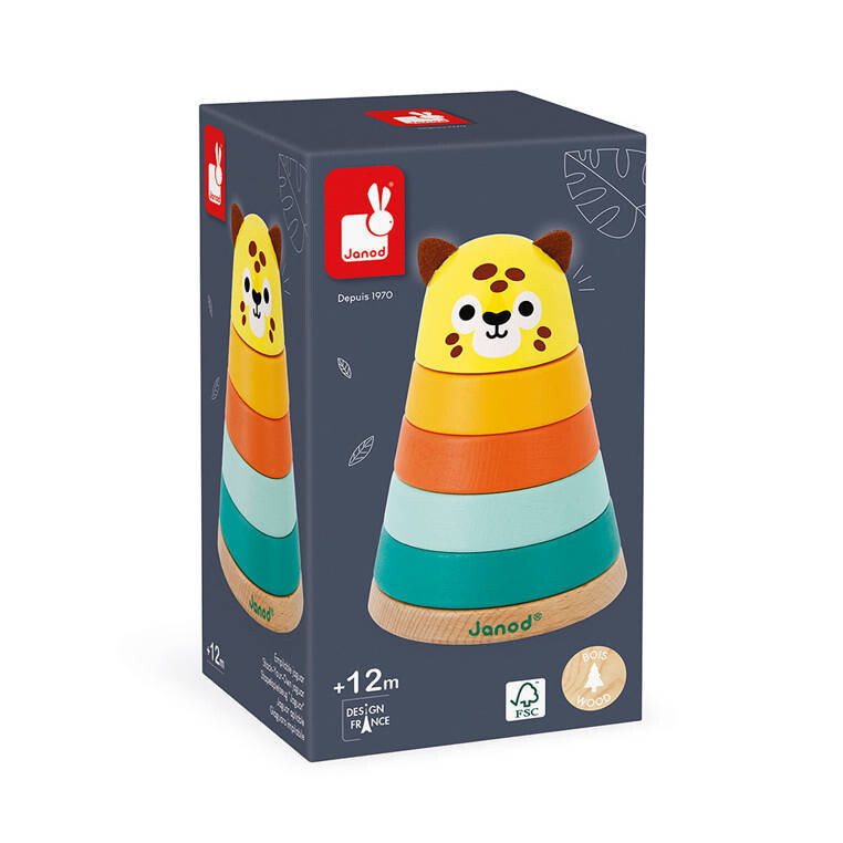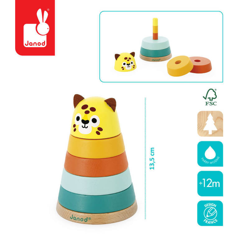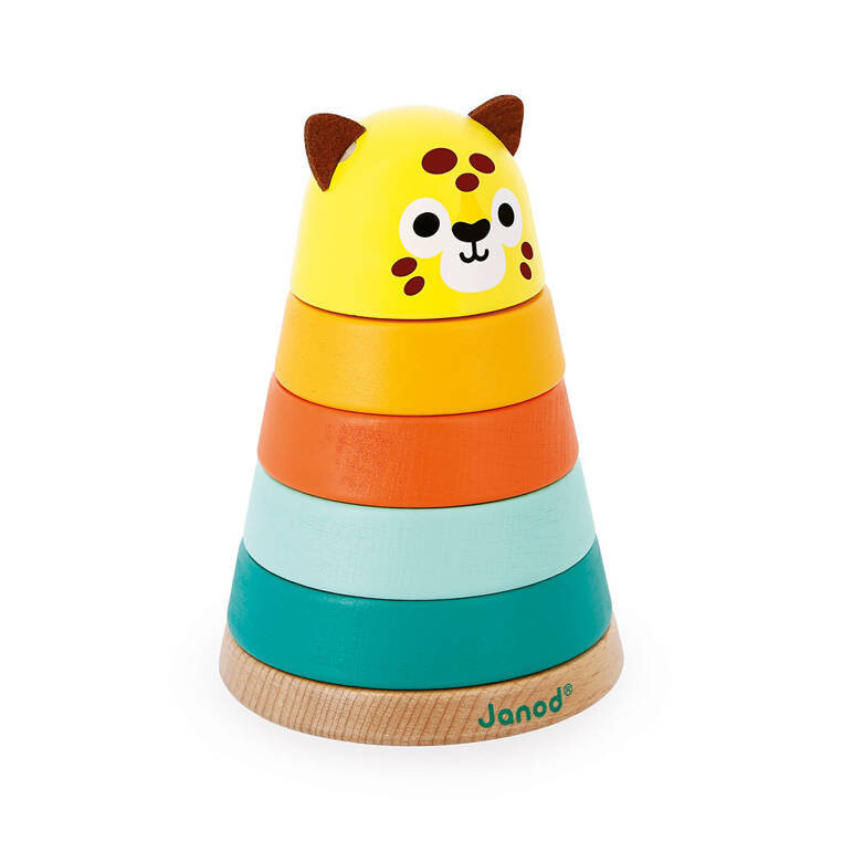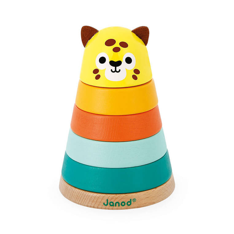 Пазл деревянная пирамидка «Ягуар» из серии «Тропик» французского бренда JANOD — креативная игрушка для детей от 1 года. лет возраста.