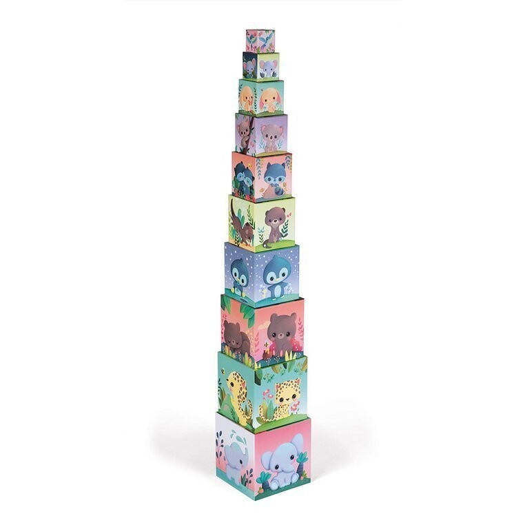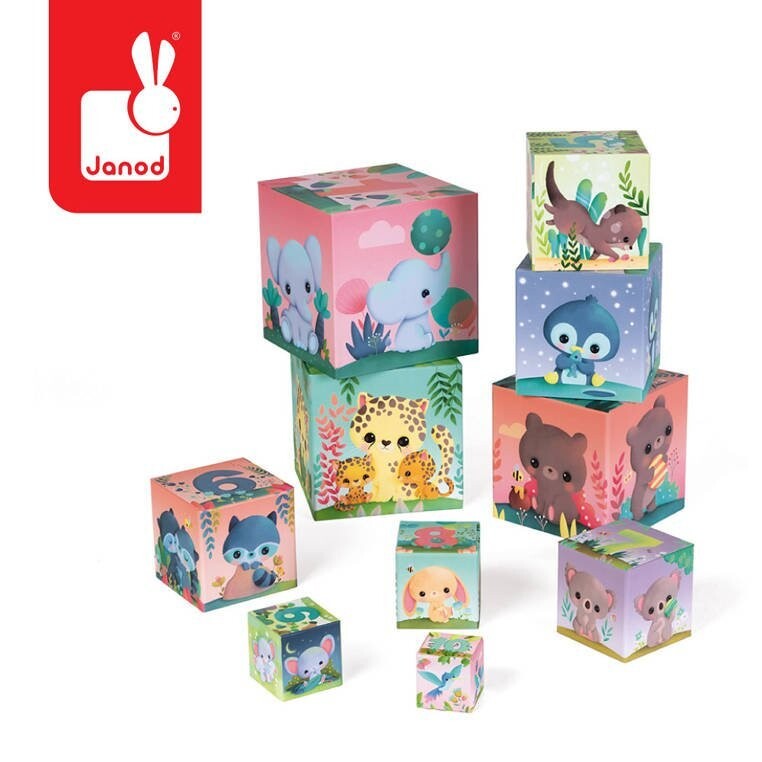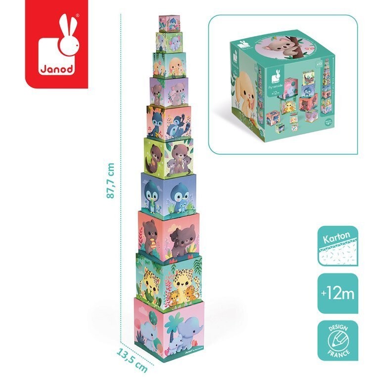 Башня Sweet Animals Pyramid Tower от Janod состоит из 10 блоков-кубов, изготовленных из картона высочайшего качества.