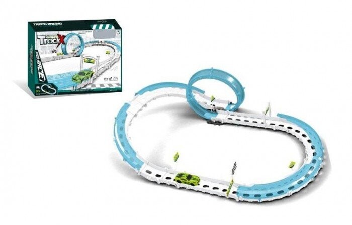 Игрушка-гоночная трасса для маленьких гонщиков. Дорожка с 1 петлей. Набор состоит из 26 элементов, а также включает в себя 1 автомобиль, дорожные знаки и USB-кабель. Размеры дорожки: 110 х 42 х 26 см. Игрушка для детей от 3 лет. Изделие работает от литиевой батареи. Он находится внутри игрушки. Набор упакован в картонную коробку с прозрачным окошком. Указанные размеры соответствуют размерам упаковки.