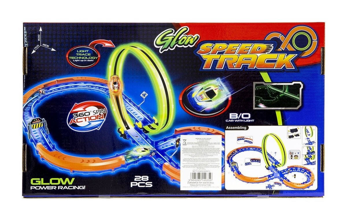 Светящаяся автомобильная трасса – отличный подарок для самых маленьких любителей автогонок. Изделие легко собрать и доставит массу удовольствия на долгие часы. Набор состоит из трассы с 28 элементами и 1 машинки с фонарями. Дополнительной достопримечательностью являются люминесцентные элементы, которые освещаются фарами едущего по трассе автомобиля.