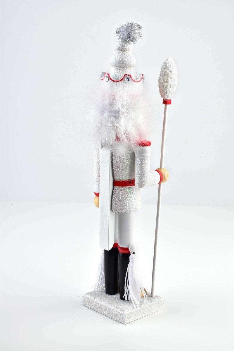Деревянная декоративная статуэтка, имитирующая щелкунчика, из серии SANTA LILA от MONDEX. Он украшен блестками.