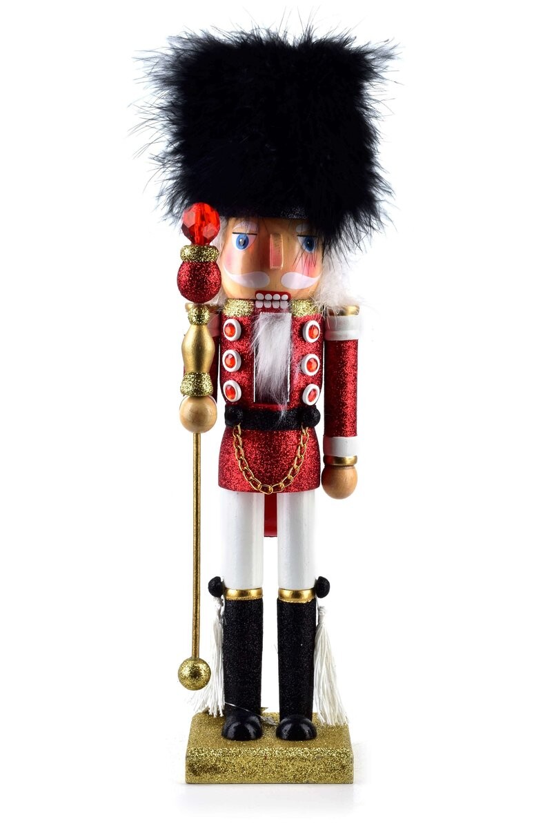 Деревянная декоративная статуэтка, имитирующая щелкунчика, из серии SANTA LILA от MONDEX. Имеет блестящий декор.