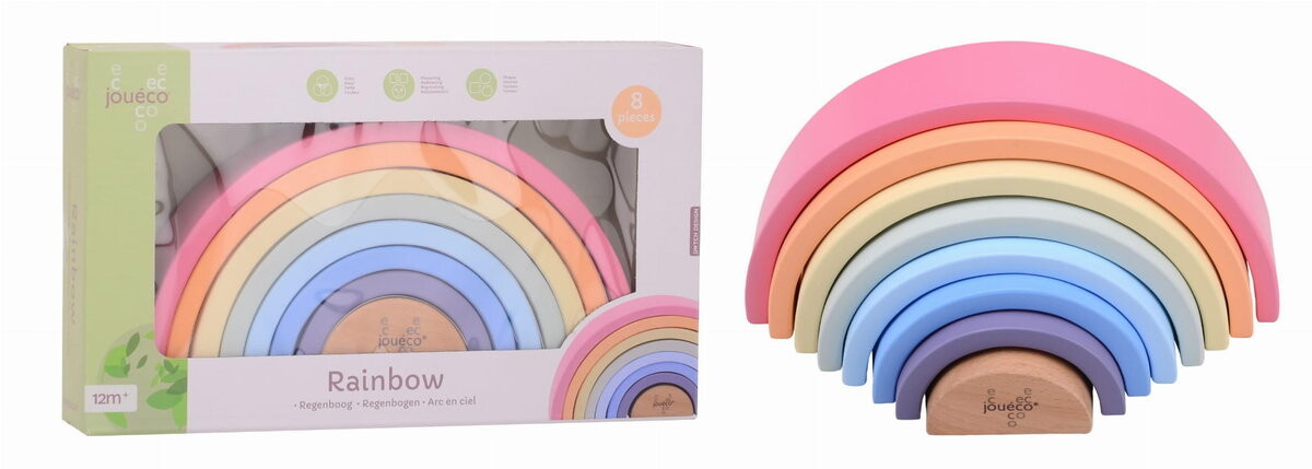 Деревянная радуга JOUECO состоит из 8 элементов красивых пастельных тонов, причем элементы разных размеров сочетаются друг с другом. Идеальная игрушка для изученияцветов, а также тренировкимоторики. Он имеет множество применений: для творческого конструирования, в качестве радуги-головоломки, бревна, туннеля для автомобилей и других. Игрушка стимулирует у детей творческие способности, пространственное воображение ифантазию, она является отличной тренировкой мелкой моторики рук, концентрации и терпения, а также зрительно-моторной координации. Это способ научиться распознаватьцвета, а также различия (меньший/большой размер). светлый/темный). Он учится творчески использовать отдельныеэлементы и комбинировать их с другими игрушками. Будет прекрасным украшением любой детской комнаты!
