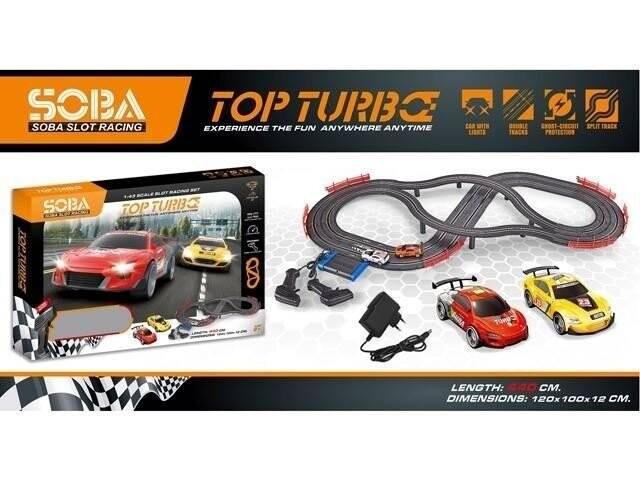 Гоночная трасса на рисунке восемь. Длина гусеницы: 440 см. Размер трека в разложенном виде: 120 х 100 х 12 см. Зарядное устройство в комплекте.