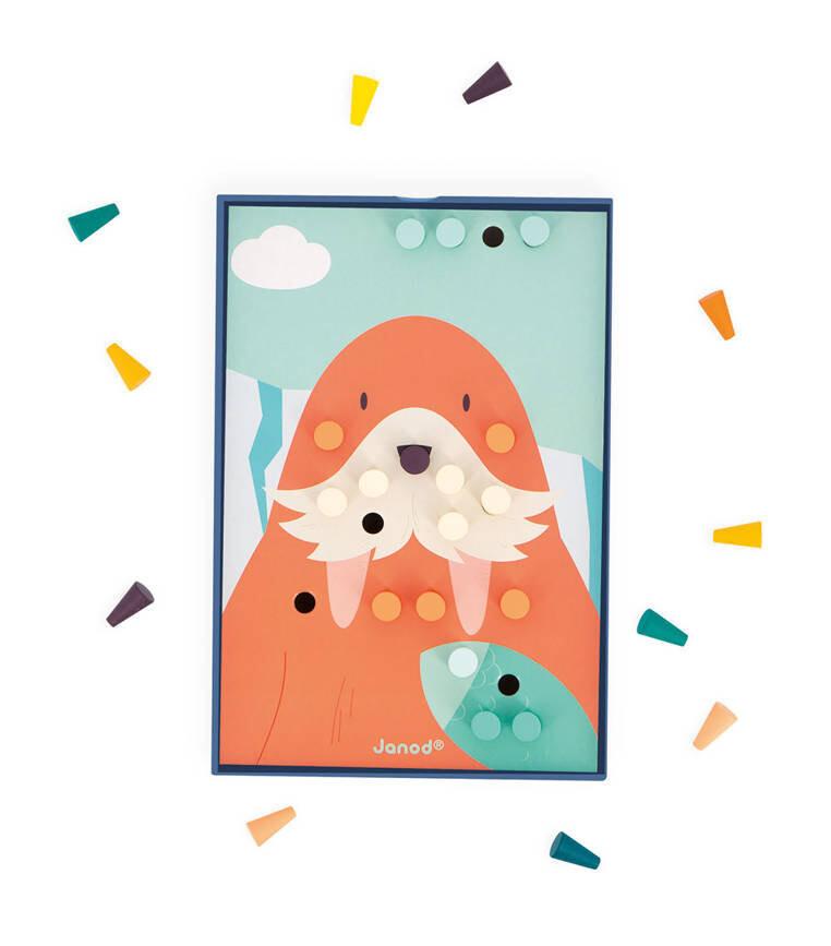 Деревянная мозаика французского бренда JANOD — креативная игрушка для малыша, который учится различать и сопоставлять цвета, тренирует хватку и так называемую мелкая моторика.