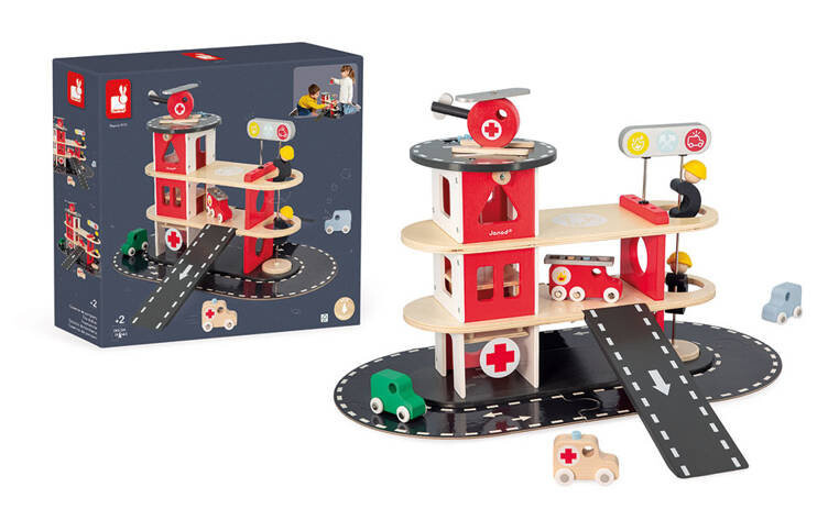 Деревянная пожарная станция из серии Bolid от французского бренда JANOD – прекрасный подарок каждому ребенку.