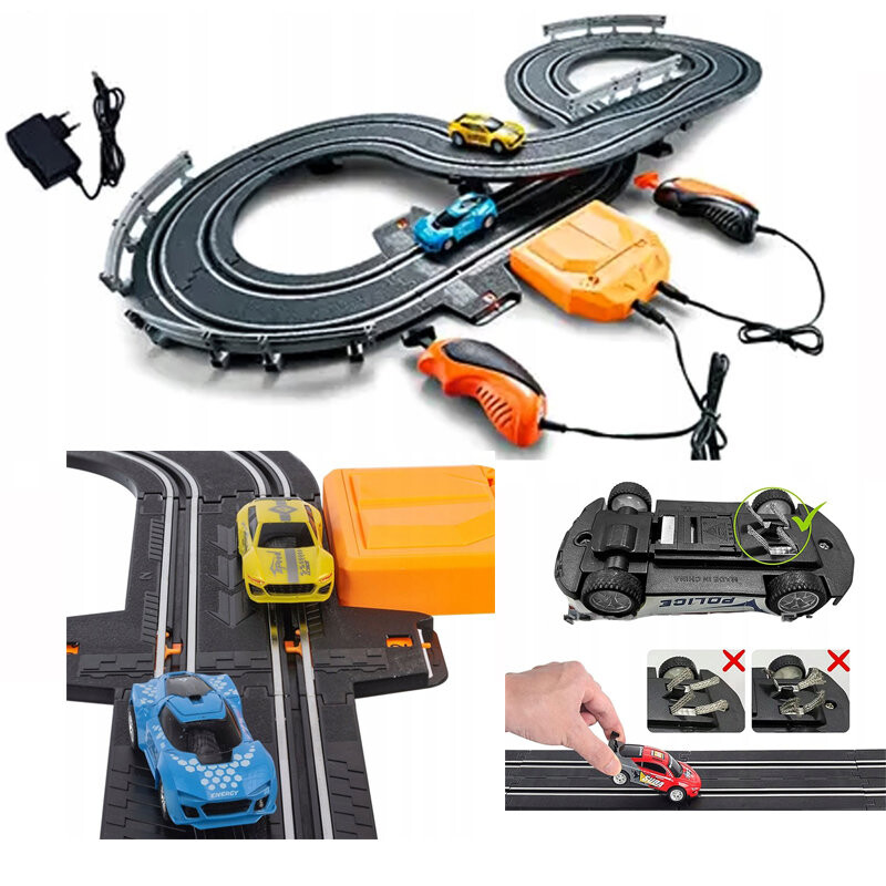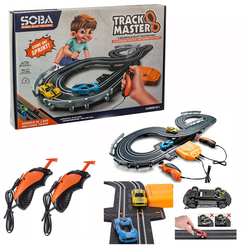В набор входят трассы длиной 214 см и 2 гоночных автомобиля, что означает двойную дозу веселья и соревнований. С помощью двух контроллеров маленькие водители смогут управлять своими машинками, соревноваться друг с другом и совершенствовать свои навыки.