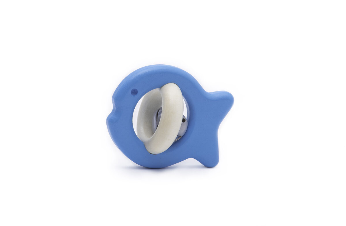 Погремушка веселится своим колокольчиком. На какое животное оно похоже? Это рыба. Простая форма погремушки дополнена рисунком силуэта животного, в центре - колокольчик. Он не выпадет из погремушки, поскольку окружен двумя пересекающимися кругами. Один представляет собой отверстие в элементе с контуром рыбы, а другой — кольцо, расположенное под прямым углом. Погремушка дает вашему ребенку множество преимуществ. Он влияет на слух, мягко стимулируя слуховую концентрацию. Это также способствует развитию мелкой моторики. Однако форма игрушки позволяет ребенку открыть для себя хват пальцев благодаря форме, адаптированной к возможностям маленьких ручек.