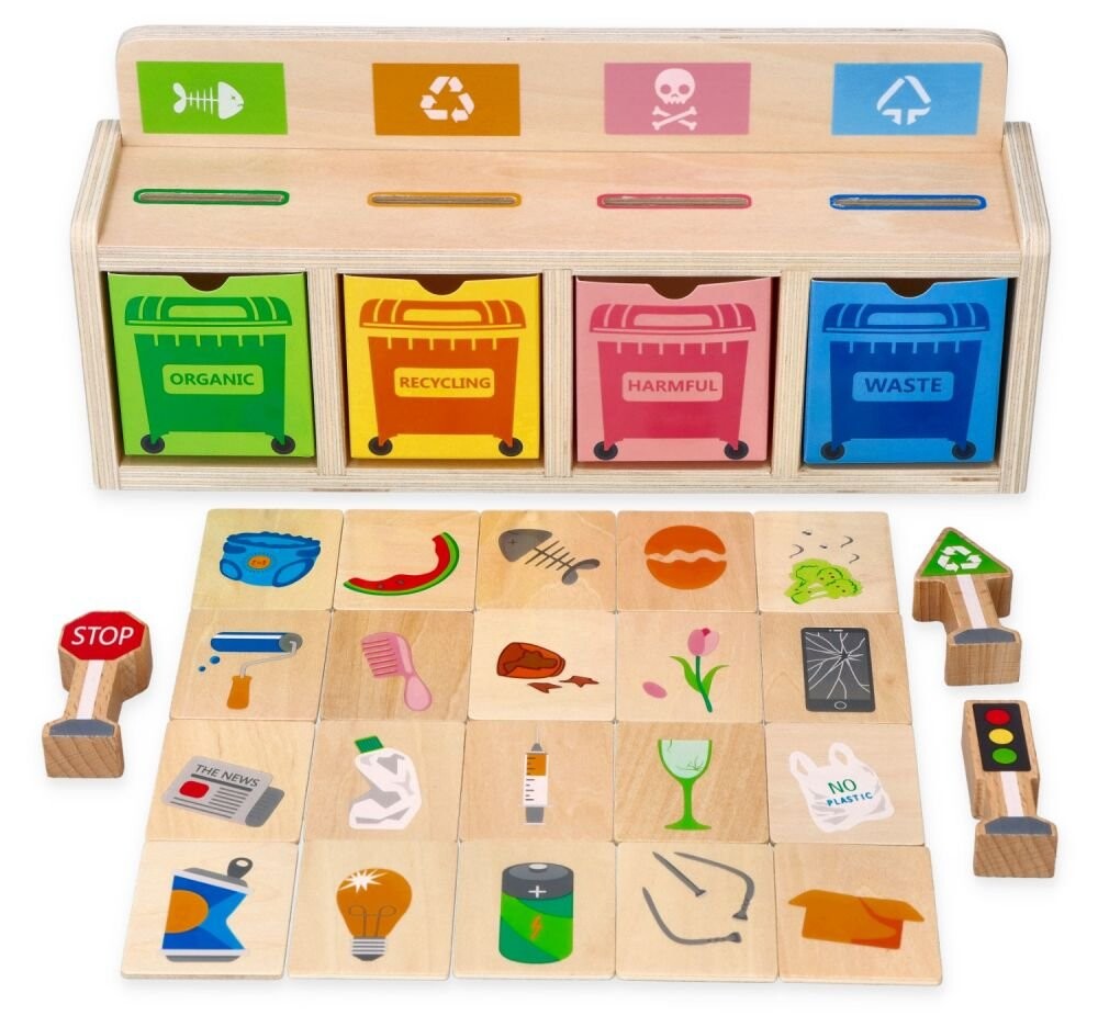 Благодаря этой элегантной мусоросортировочной машине Lelin ваши дети легко и приятно разберутся, как сортировать мусор.