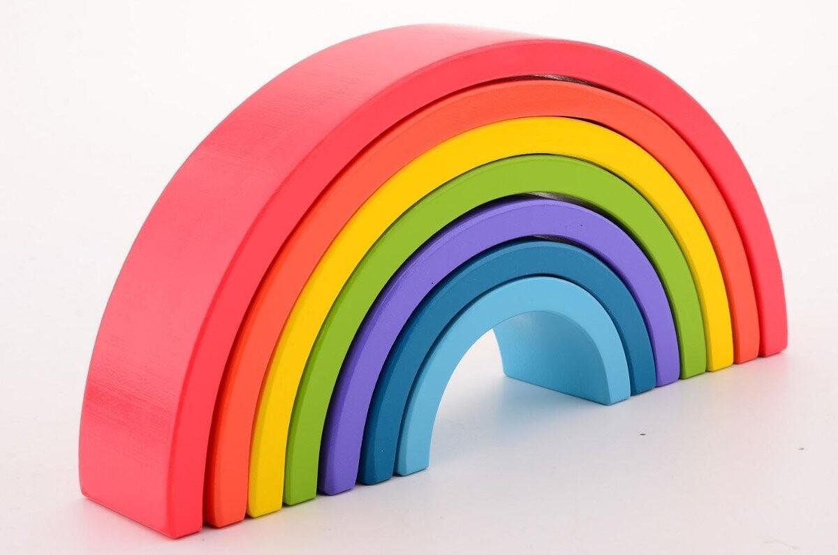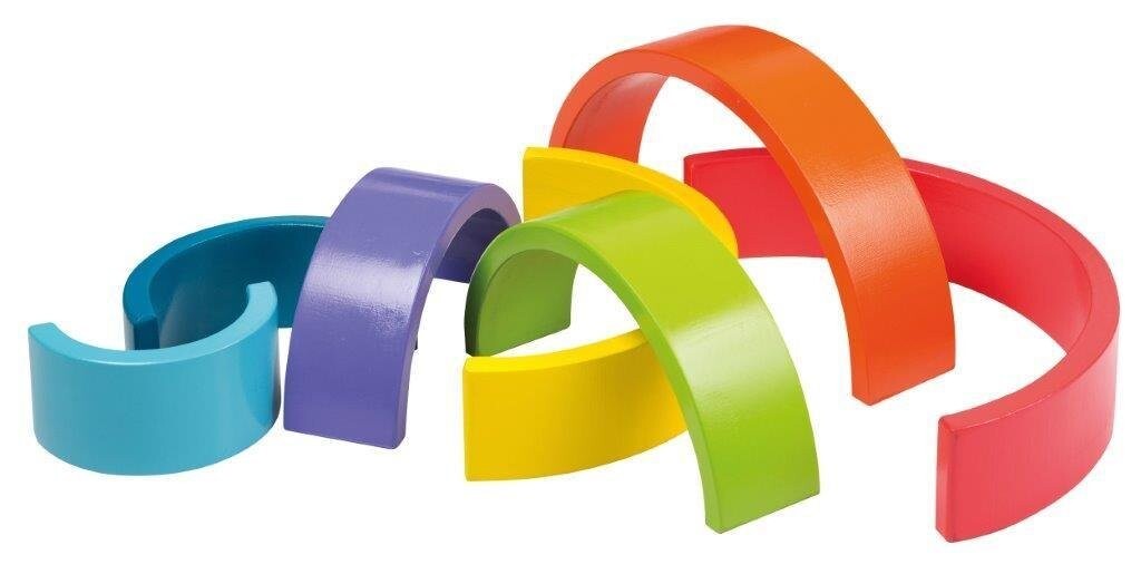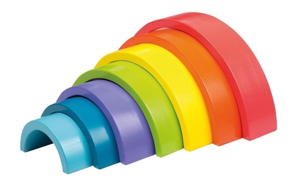 80081 Деревянная радуга Деревянная радуга состоит из 7 элементов цветов радуги разных размеров, которые сочетаются друг с другом. Идеальная игрушка для изучения цветов и тренировки мелкой моторики. Он имеет множество применений: для творческого конструирования, в качестве радуги-головоломки, бревна, туннеля для автомобилей и других. Игрушка стимулирует творческие способности детей, пространственное воображение и фантазию, а также является отличной тренировкой мелкой моторики, концентрации, терпения и зрительно-моторной координации. Это способ научиться распознавать цвета и различия (меньше/больше, светлый/темный). Речь идет о том, как научиться творчески использовать отдельные элементы и комбинировать их с другими игрушками. Игрушка изготовлена из сертифицированного высококачественного дерева, полностью безопасна, покрыта нетоксичной краской. Размер: 26х5х13см. Возраст 12 месяцев +