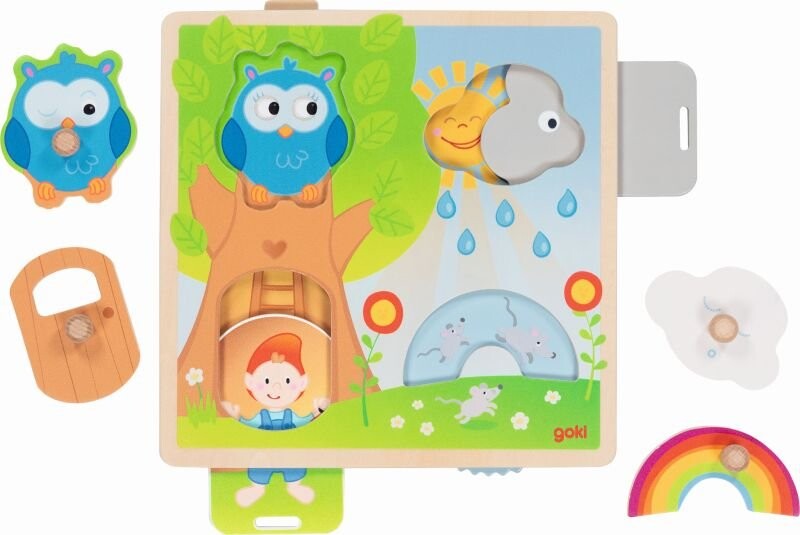 Интерактивный деревянный пазл Goki для детей с погодой — игрушка 2-в-1, рекомендуемая с первого года жизни.