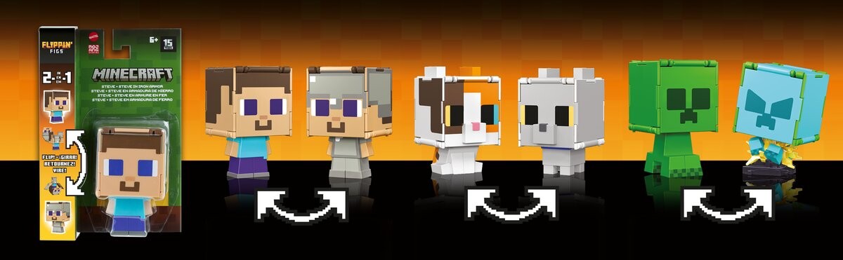Внимание, игроки! Приготовьтесь к бесконечным действиям с коллекционными фигурками-трансформерами. Эти фигурки легко трансформируются из одной формы в другую. Просто сдвиньте панели на большой голове фигурки и зафиксируйте их, чтобы за считанные секунды открыть другого персонажа Minecraft — это как две фигурки в одной. Это фантастическое превращение можно повторять бесконечно! Выбор персонажей делает коллекционирование этих пиксельных фигурок в стиле Minecraft еще более увлекательным как для детей, так и для взрослых коллекционеров. Продается отдельно, при наличии. Цвета и декоративные элементы могут различаться.