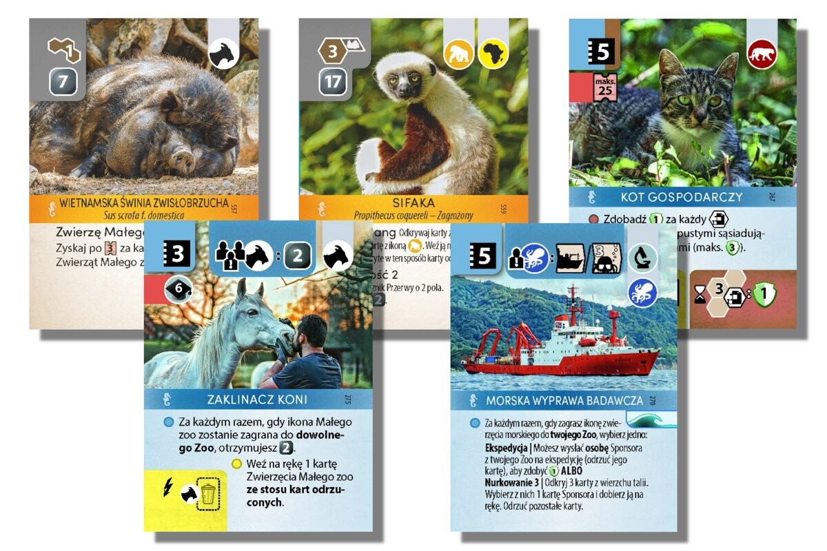 Новые университеты предоставляют доступ к одному выбранному значку животного, а также новому Карты зоопарка, плитки итогового подсчета очков и бонусные плитки расширяют набор базовой игры.