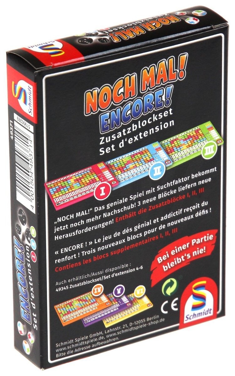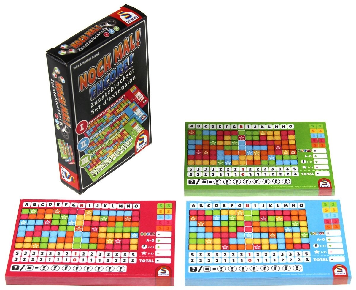Дополнительные блоки для игры в кости И снова! (Ноч Мал!). Откройте для себя новые возможности с различными макетами листов (отличными от базовой версии). Каждый блокнот состоит из 75 односторонних листов бумаги.