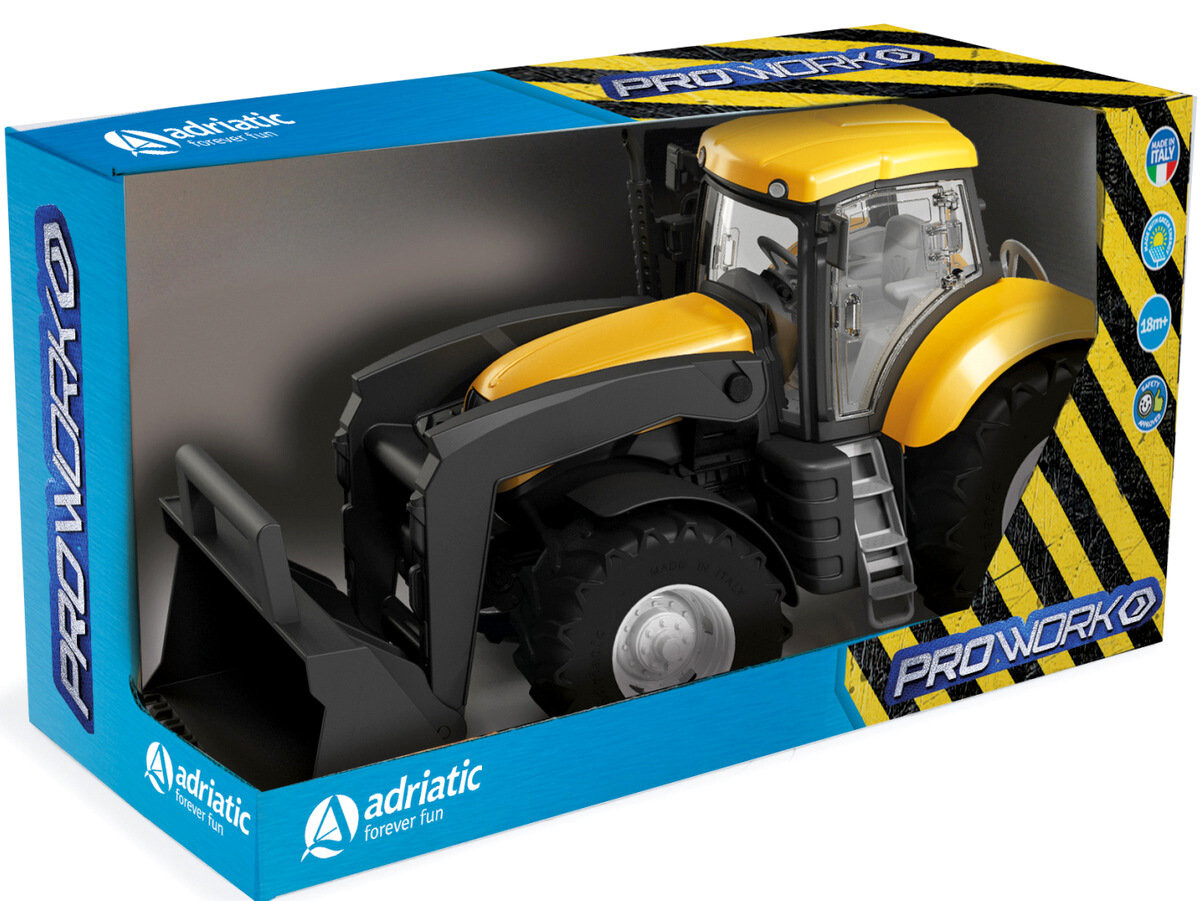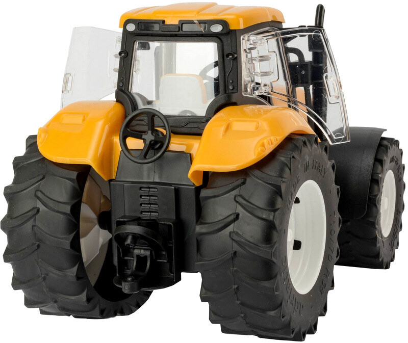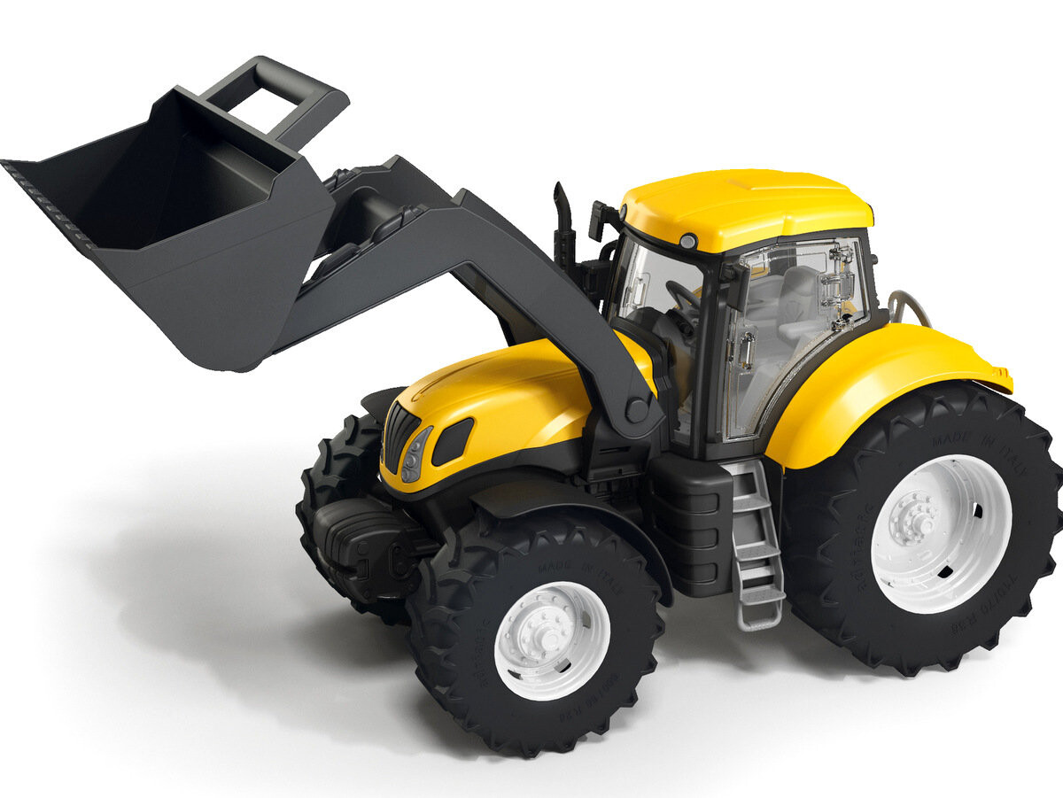 Трактор изготовлен из качественного пластика, поэтому прослужит долго. Игрушка упакована в эстетичную картонную коробку.