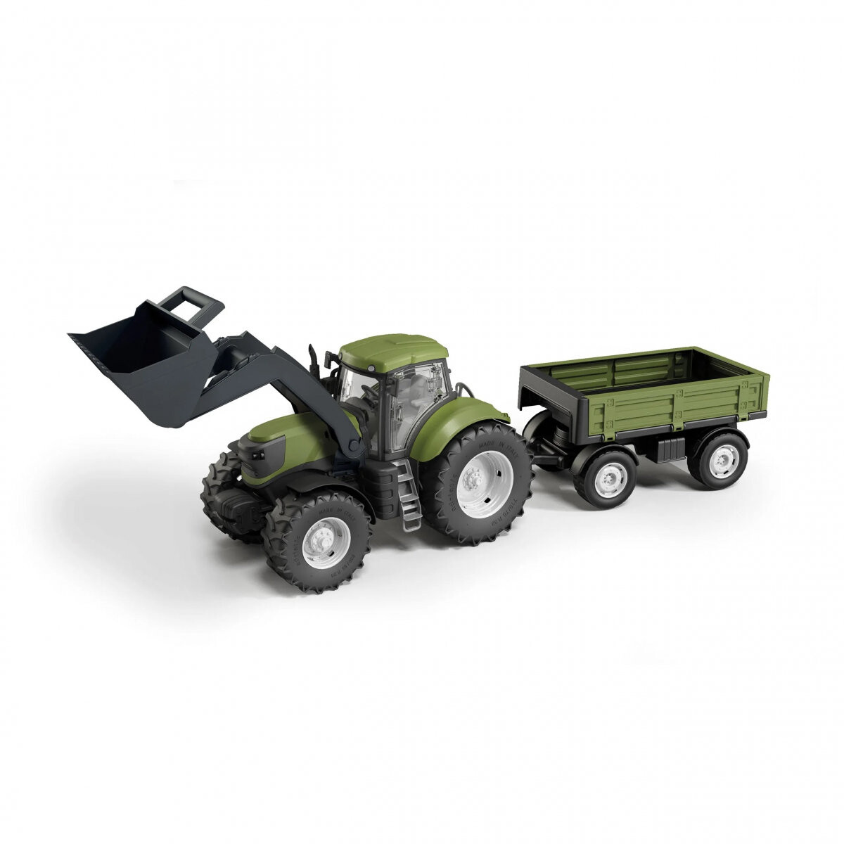 Трактор оснащен активной передней подвеской. Развлечение становится еще более привлекательным благодаря лифтинг-маске и подвижной ложке. У трактора широкие колеса с протектором из настоящей резины, поэтому он справится с любой местностью. Дополнительно в комплект входит вместительный прицеп, в котором легко можно перевезти все необходимое. И трактор, и прицеп изготовлены из качественного переработанного пластика, поэтому игрушка прослужит долго. Игрушка была упакована в коробку, которая также была отправлена на переработку.Переработка отходов – вместе мы заботимся об окружающей среде!