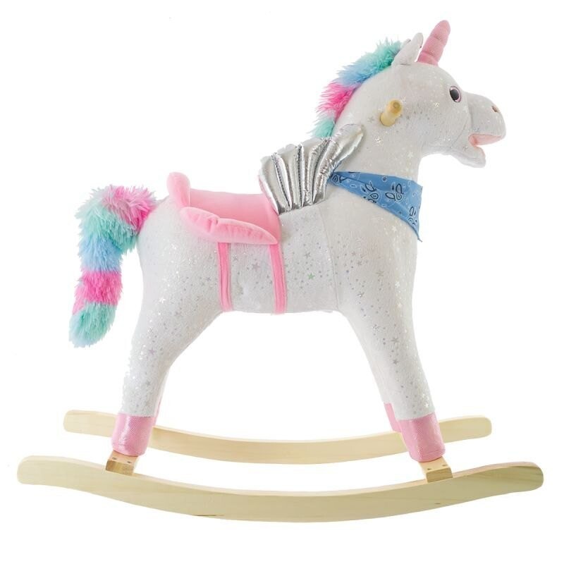 Игрушка имеет: - различные звуки - деревянные ручки - безопасные деревянные полозья - стремена некоторых моделей - подвижные хвост и рот