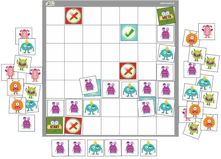 Он позволяет вам научиться расставлять и упорядочивать предметы, самостоятельно создавая настольную игру, используя набор из 58 досок с дружелюбными монстрами.