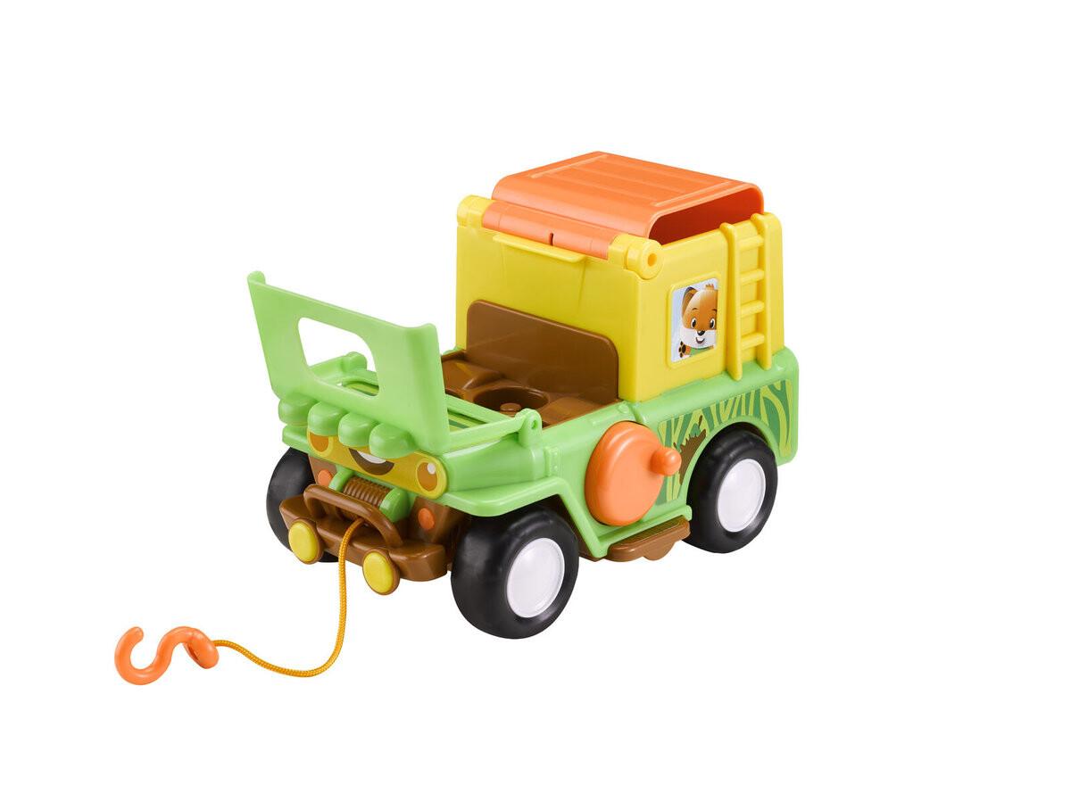 В комплект «Джип Сафари» входят: открывающийся внедорожник с лебедкой с крюком, комната на крыше, кухня и стол, плюс чемодан и одно животное — обезьянка. Для сборки игрушки необходим взрослый человек. Игрушка для детей от 18 мес. Рекомендуем протирать поверхность игрушки мыльным раствором и влажной тряпкой.