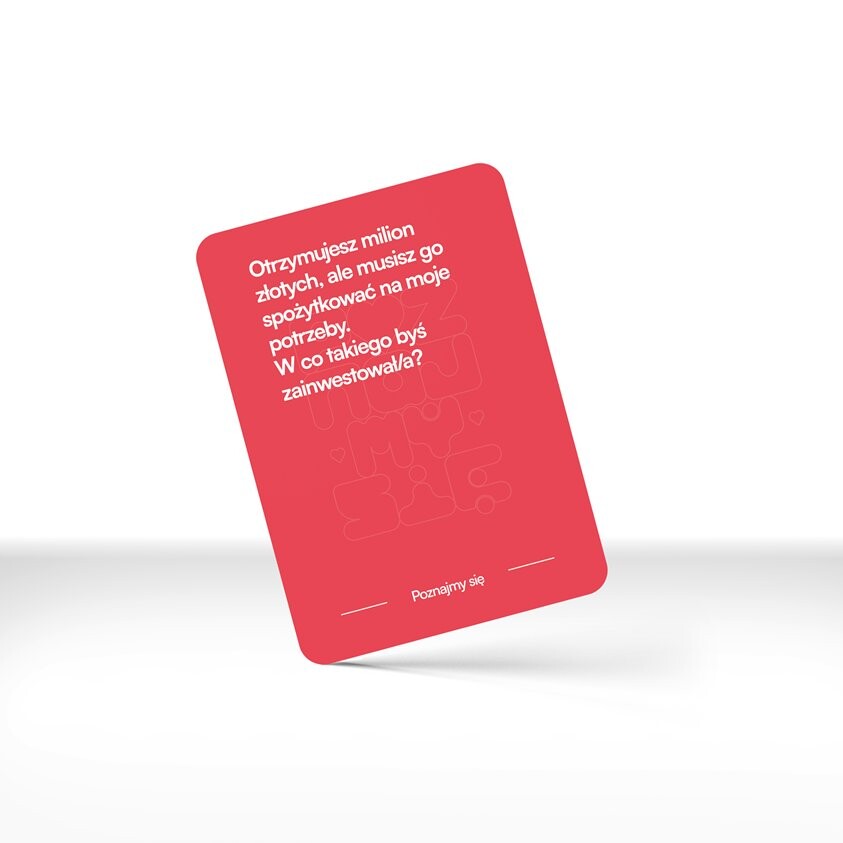 Карточная игра «Давайте познакомимся» специально разработана для пар, чтобы они могли познакомиться лучше узнать друг друга и укрепить свои отношения. Он состоит из 160 вопросов, поровну разделенных на четыре категории. Каждая категория содержит 40 вопросов, адаптированных к разным уровням интимности и глубины разговора.