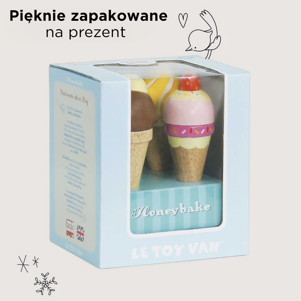 Подайте мороженое с этим очаровательным набором из четырех раскрашенных вручную рожков мороженого из коллекции вдохновляющих игрушек-игрушек Le Toy Van. Ярко оформленные рожки для мороженого, с любовью изготовленные из массива каучукового дерева и дополненные деревянной основой, окрашены в свежие цвета и отделаны золотыми деталями.