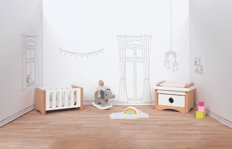 Набор стильной мебели для обустройства детской комнаты в кукольном домике. Все элементы выглядят очень реалистично. Разыгрывание сценок с куклами влияет на развитие воображения и творческих способностей ребенка. Красочные игрушки придают набору неповторимый шарм.