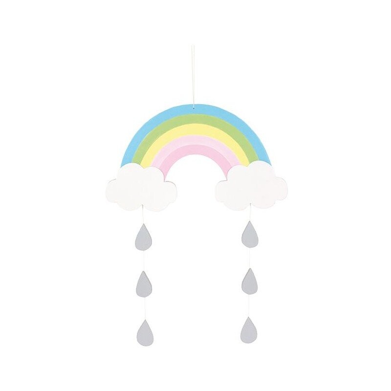 Очаровательный деревянный мобиль с радужным мотивом - прекрасный декоративный элемент для комнаты как малыша, так и дошкольника.  Деревянный мобиль-радуга красивых пастельных тонов с белыми каплями дождя станет прекрасным дополнением детской комнаты, его можно повесить куда угодно. Продукт шведского бренда Jabadabado, упакованный в коробку – отличная идея для подарка. Размеры: 50 х 29 х 50 см. Деревянные мобили сочетаются с другими декоративными элементами бренда Jabadabado, создавая чрезвычайно уютные, стильные детские интерьеры. В нашем предложении также имеются пластиковые и деревянные монтажные кронштейны для деревянных мобильных телефонов Jabadabado. Jabadabado — шведская компания, работающая на рынке с 1993 года, специализирующаяся на разработке и производстве деревянных игрушек и элементов оборудования детских комнат. Вся продукция Jabadabado отличается оригинальным дизайном. красивые цвета и очень тщательная обработка. Все игрушки Jabadabado разработаны с учетом интересов детей и поощряют творческую игру.