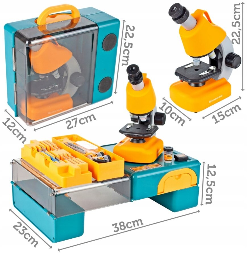 НАУЧНЫЙ МИКРОСКОП С АКСЕССУАРАМИ В КОРПУСЕ МАКСИМАЛЬНОЕ УВЕЛИЧЕНИЕ 640X / КЛАССИЧЕСКИЙ ПРЕДВАРИТЕЛЬНЫЙ ПРОСМОТР / ПРЕДВАРИТЕЛЬНЫЙ ПРОСМОТР ЧЕРЕЗ СМАРТФОН / МНОГОЧИСЛЕННЫЕ АКСЕССУАРЫ В КОМПЛЕКТЕ / ВСТРОЕННАЯ СВЕТОДИОДНАЯ ЛАМПА / ВСЕ В УДОБНОМ КЕЙСЕ ЧЕМОДАН ✓ ОТКРЫВАЙТЕ ВСЕ, ЧТО НЕВИДИМО НЕВИДИМЫМ ГЛАЗОММикроскоп с аксессуарами порадует каждого маленького учёного. Благодаря этому устройству у микроскопического мира не будет от нас тайн. Используя его, мы можем наблюдать, среди прочего, за растениями, мелкими животными, такими как насекомые, или за тем, что находится в нашей воде.Основные характеристики: