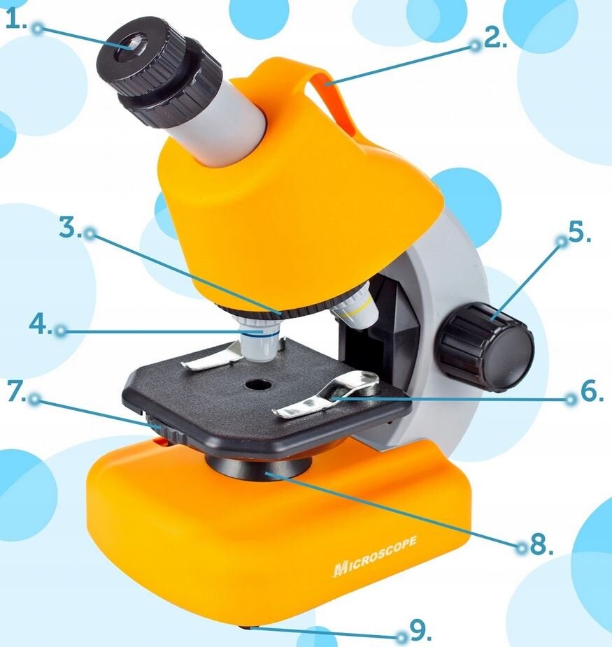 ✓ ВОЗМОЖНОСТЬ УВЕЛИЧЕНИЯ ДО 640Х ❗❗❗Микроскоп имеет 3 линзы, установленные на вращающемся револьвере. Имеют увеличения: 4х, 10х. 40х. Окуляр, расположенный в верхней части прибора, обеспечивает дополнительное увеличение, до 16 раз превышающее значение, установленное на объективе. Благодаря винту на подставке можно регулировать высоту установки образца.