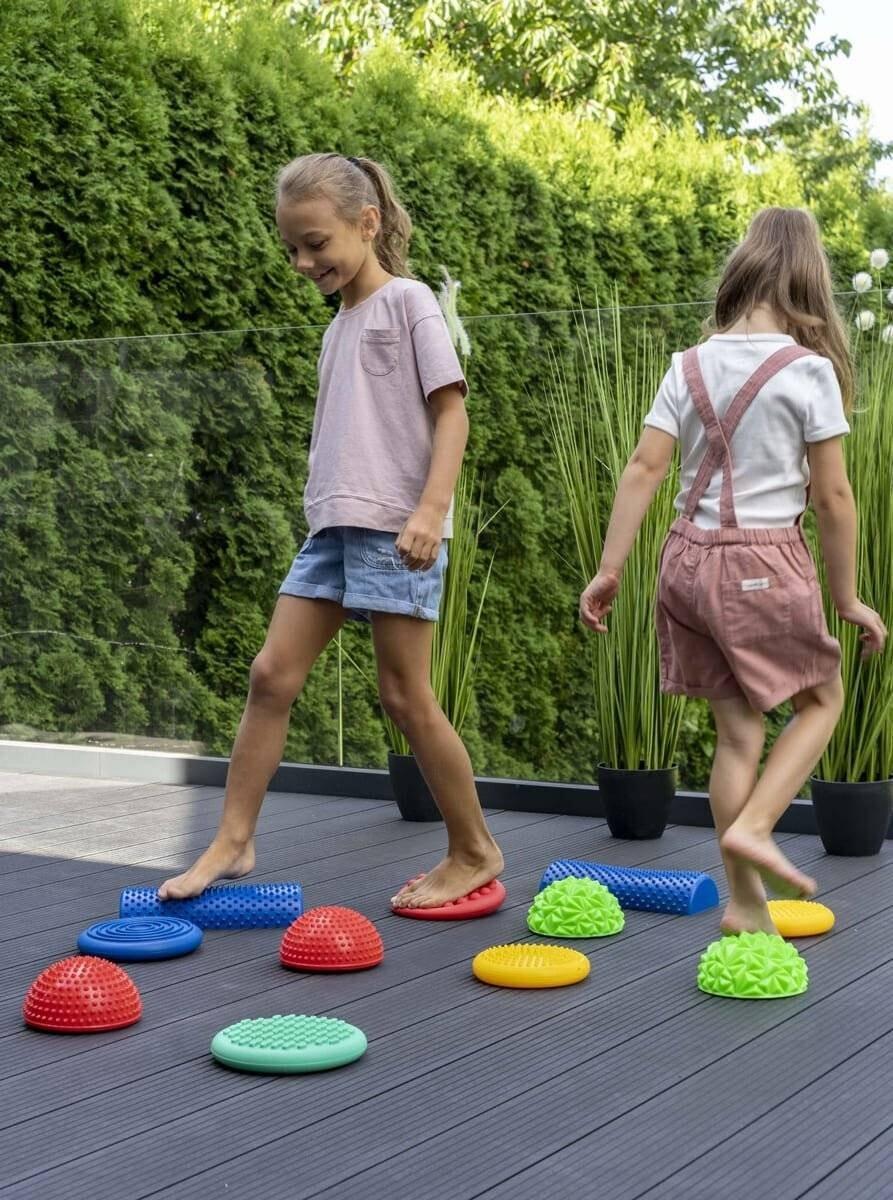 Сенсорная дорожка 11 шт.Специальные выступы на сенсорных элементах стимулируют сенсорные рецепторы и улучшают кровообращение. Сенсорная дорожка также является отличным развлечением для всей семьи, развивая творческие способности детей, позволяя им свободно расставлять элементы. Набор безопасен, изготовлен полностью в Польше из сертифицированного сырья высочайшего качества, что гарантирует отсутствие фталатов, BPA и тяжелых металлов. ЭЛЕМЕНТЫ НАБОРА: