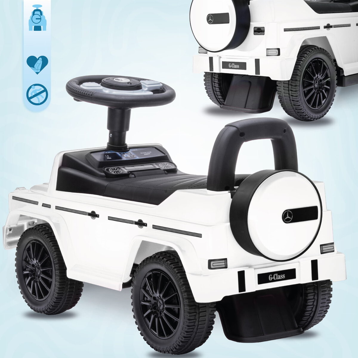 Придает более стильный вид, что наверняка понравится маленьким автолюбителям.