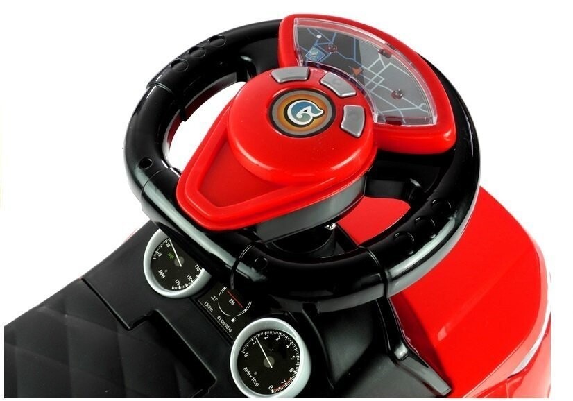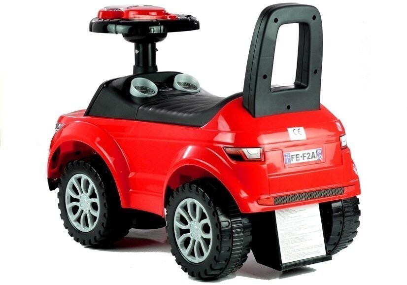 Красно-черный райдер имеет очень легкую конструкцию, что позволяет легко маневрировать и управлять им. Большое и, прежде всего, удобное сиденье имеет продуманное отделение для хранения мелких предметов, например игрушек, которые ваш малыш хочет взять с собой на прогулку. Практичная спинка, прикрепленная к сидению, поможет ребенку сохранять прямую осанку во время игры, а также чувствовать себя очень комфортно. Большие и широкие колеса райдера позволяют выбирать разные поверхности для игры, благодаря чему машина подойдет как дома, так и во дворе. Максимальная нагрузка на этот райд-он 27 кг. поэтому он обязательно прослужит вашему малышу долгое время.