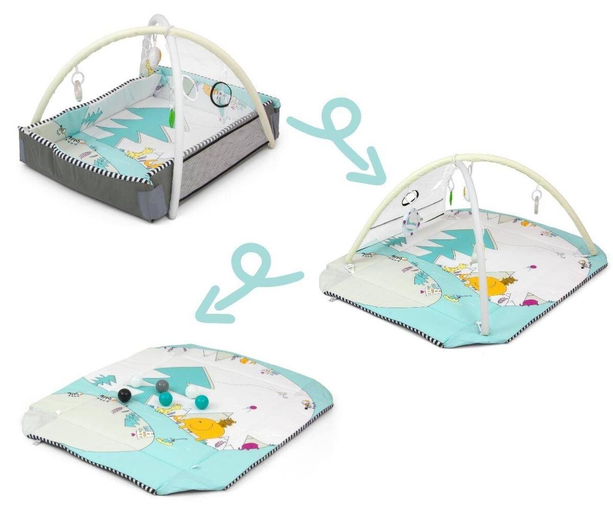 Игрушки и коврик можно чистить влажной тряпкой. При более сильном загрязнении коврик можно постирать вручную с добавлением деликатных моющих средств.