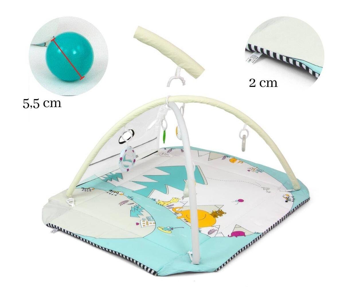 Игрушки можно свободно подвешивать как на перекладинах, так и на коврике (есть специальные крючки, позволяющие прикрепить их в нескольких местах). Каждая игрушка обладает аттракционом, который положительно влияет на развитие ребенка, стимулируя его чувства.