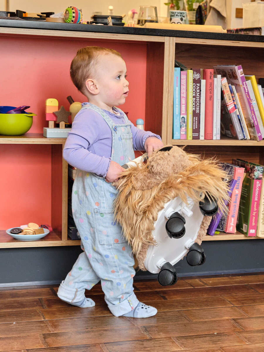 Каталки Hairies прекрасно подойдут в качестве игрушки для детей, которые начинают учиться передвигаться самостоятельно, и для тех, кто которые уже эффективно предпринимают шаги и хотят двигаться еще активнее самостоятельно.