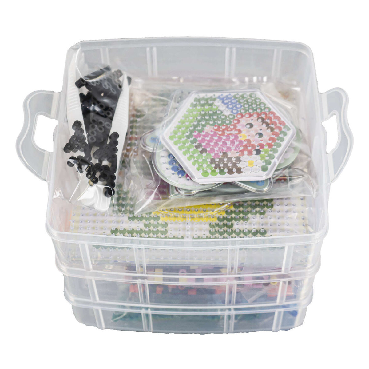 Разложите выбранный рисунок из бисера на подготовленную пластиковую форму с выступами. Ребенок может делать это один или с друзьями.