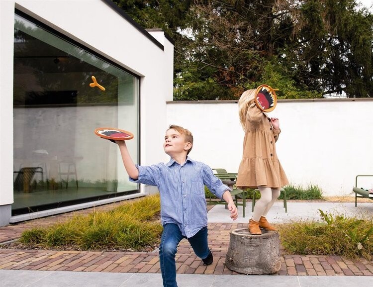 Весла с мотивом Тигра и Льва представляют собой 2 магнитных диска с метательным диском. Эта игра, прежде всего, является безопасным развлечением как для молодых, так и для пожилых любителей спортивных игр. Игра предполагает как можно более точное попадание дисков по мишени весла. Щит плоский и легкий, что обеспечивает приятную игру. Каждая палитра имеет ручку, позволяющую регулировать размер. Это игрушка для всех, кто любит движение и отличное развлечение.