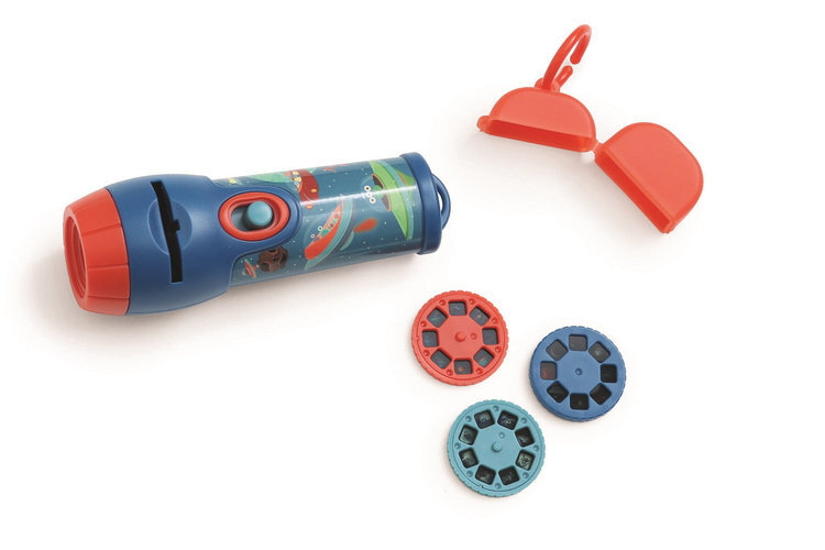 Проектор имеет источник света, регулируемую линзу для фокусировки и скользящую кнопку ВКЛ/ВЫКЛ. Размер проектора адаптирован к маленьким ручкам юных натуралистов. В комплект входят три диска со слайдами (без подписей), по восемь слайдов на каждом. Каждый щит имеет разные коллекции: