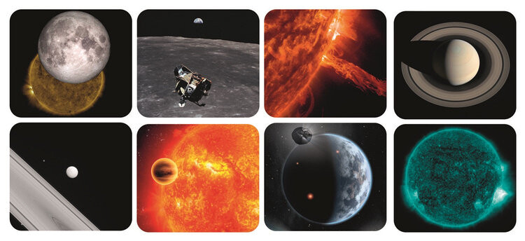 2 щит: коллекция из 8 изображений различные звезды и явления из космоса, такие как Земля луна и т. д.