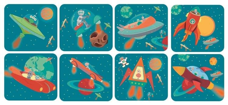 1 щит: коллекция из 8 анимаций различных космических аппаратов, таких как НЛО, космические ракеты и т. д.