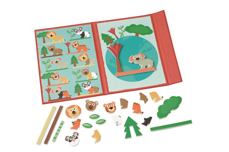 Вам предстоит решить 10 карточек с заданиями о животных. Большие и толстые магниты (27 шт.) облегчают работу маленьким ручкам. Помимо игры с цветами и формами, игра стимулирует такие навыки, как логическое мышление, концентрацию, пространственное восприятие и зрительное восприятие.
