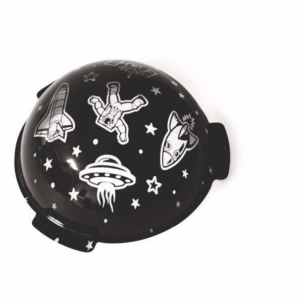 С помощью космического проектора можно легко перенестись в далекие просторы галактики. Проектор оснащен тремя сменными куполообразными корпусами для проецирования на стену слайдов: звездного неба, космонавтов и ракет, коллекции планет.