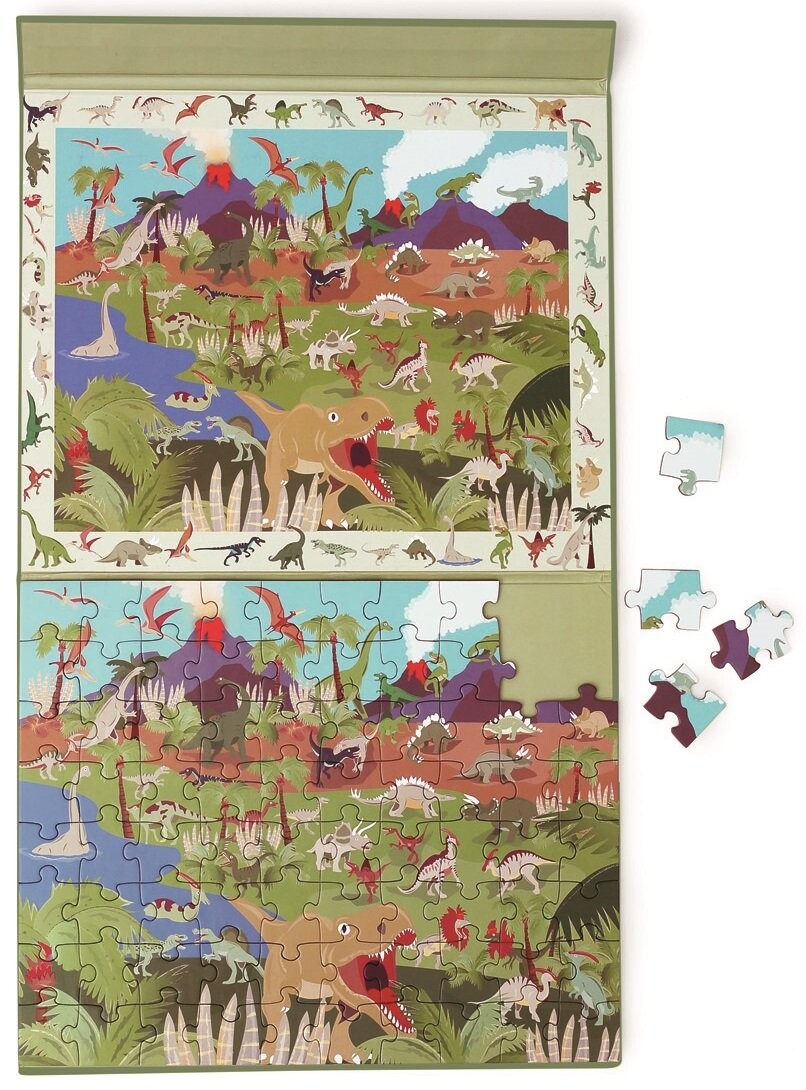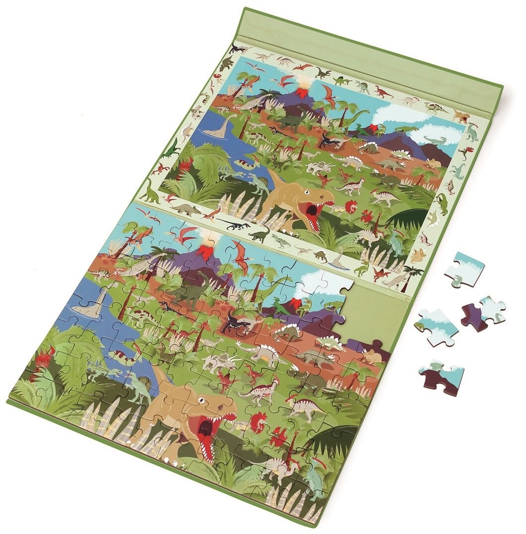 Магнитный пазл, 80 деталей и игра-наблюдение Динозавры 6181230 Scratch