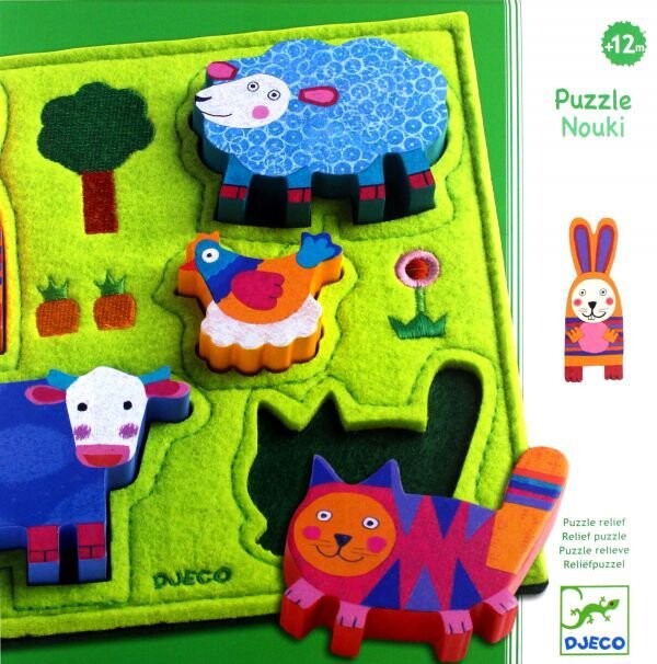 Деревянные пазлы - Wesoła Farma - это развивающие пазлы, предназначенные для самых маленьких детей. Трехмерные деревянные фигурки животных (овца, заяц, курица, корова и котенок) позволяют маленьким ручкам легко собрать эту головоломку. Основа пазла покрыта ярким мягким фетром. Сняв их с основы, с животными можно играть в тематические игры. Образовательные ценности: тренировка мелкой моторики, концентрации, наблюдательности и воображения. Возраст ребенка: 12 месяцев + Размеры: 21 х 21 х 2,5 см. Размер упаковки: 22,6 х 22,6 х 2,5 см.