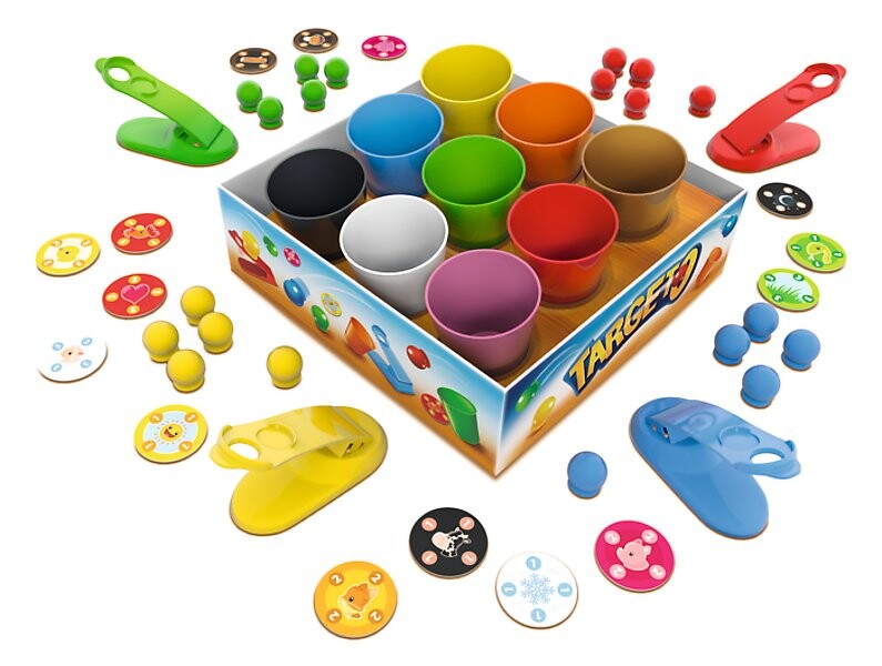В Targetoигроки целятся в разноцветные стаканчики с помощью катапульты. Загрузите его кусочками 4-х разных цветов. Подготовка каждой игры зависит от варианта. какие игроки выберут. 5 разных забавных идей описаны в инструкции.